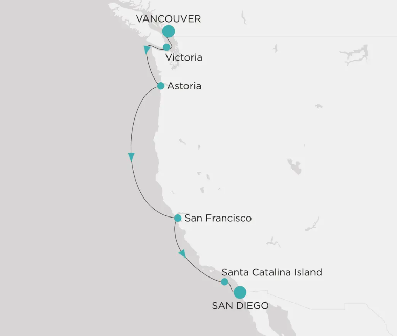 Sailing aboard Crystal Serenity with Crystal Cruises from Vancouver to San Diego is a beautifully curated journey along North America’s iconic Pacific coastline. This sophisticated voyage blends vibrant cities with relaxed seaside charm, beginning with a call in Victoria, where manicured gardens and historic architecture set the tone for coastal elegance. From there, you’ll visit Astoria, perched at the mouth of the Columbia River and rich with maritime history, before arriving in San Francisco, where sailing beneath the Golden Gate Bridge is a true bucket-list moment.
