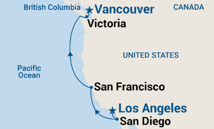 Set sail aboard the elegant Royal Princess with Princess Cruises—the cruise line made famous as “The Love Boat”—on a breathtaking coastal voyage from Los Angeles to Vancouver. This scenic Pacific Coast sailing blends the relaxed luxury of Princess Cruises with spectacular ocean views and vibrant destinations. Onboard, guests can enjoy spacious staterooms, award-winning dining, Broadway-style entertainment, and relaxing poolside moments while watching the beautiful coastline glide by. Whether sipping cocktails on deck at sunset or enjoying a gourmet dinner, the Royal Princess delivers a refined and unforgettable cruise experience.