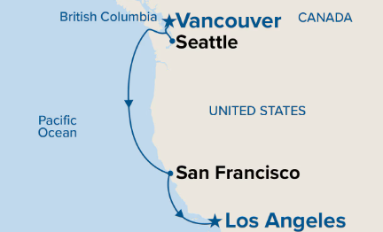 Sailing aboard Princess Cruise Lines’ Star Princess from Vancouver, British Columbia to Los Angeles, California is a spectacular way to experience the beauty and culture of the West Coast. This iconic voyage treats guests to a mix of dynamic port cities and peaceful days at sea. After departing vibrant Vancouver, you’ll call on Seattle, where the Space Needle, Pike Place Market, and waterfront charm invite exploration. Further south, the Golden Gate City of San Francisco offers its unmistakable skyline, historic cable cars, and world-famous waterfront before you continue down the California coast toward sunny Los Angeles.
