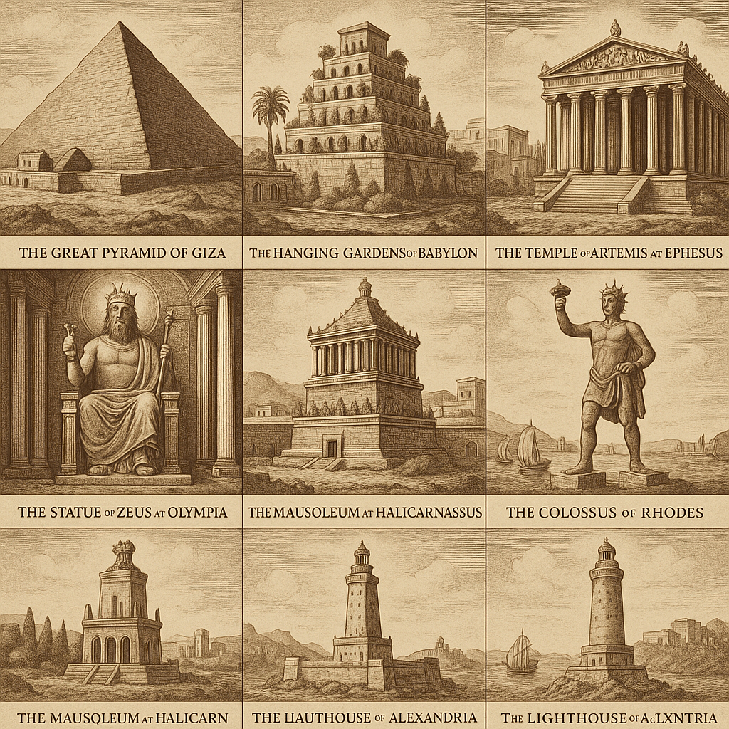 Each wonder tells a story of power, belief, culture, and ambition. Whether it was a tribute to a goddess (Temple of Artemis) or a monument to a lost love (Mausoleum at Halicarnassus), these sites reveal what ancient civilizations valued most. - They bridge myth and reality.